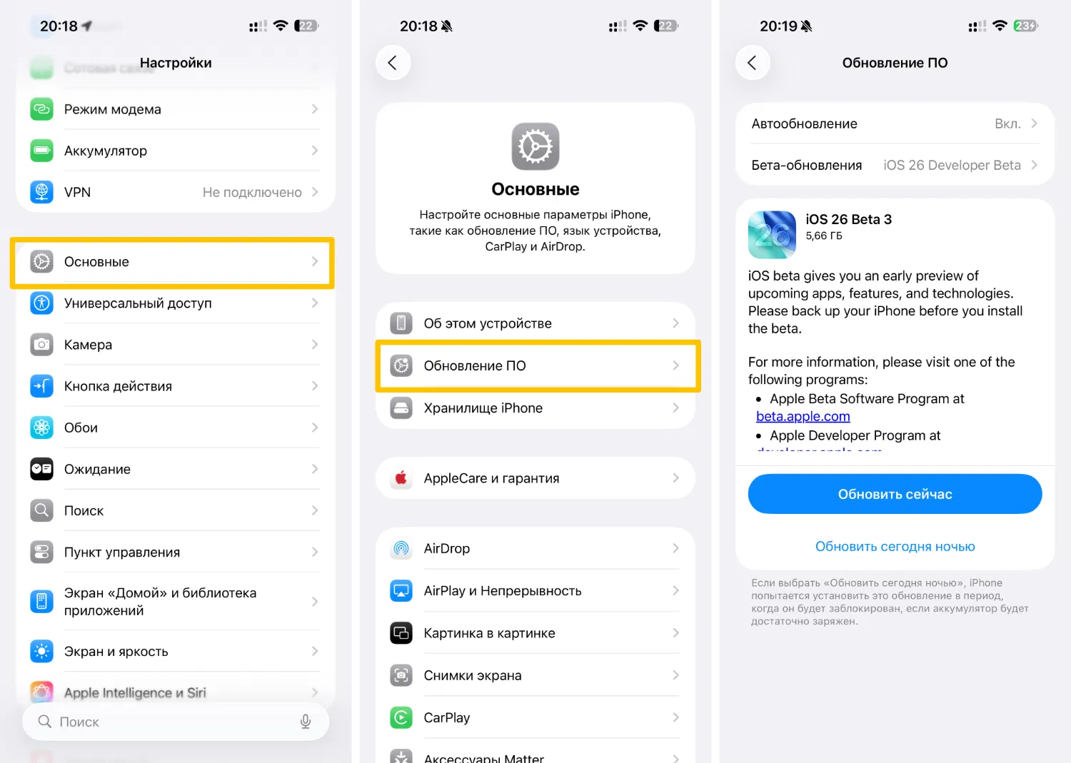 Инструкция: Как установить бета-версию iOS 26 уже сейчас. Установите бета-версию для разработчиков, следуя нашей пошаговой инструкции. Рассказываем, как пройти регистрацию или скачать Beta IPSW файл, создать резервную копию и обновить iPhone до iOS 26 Developer Beta