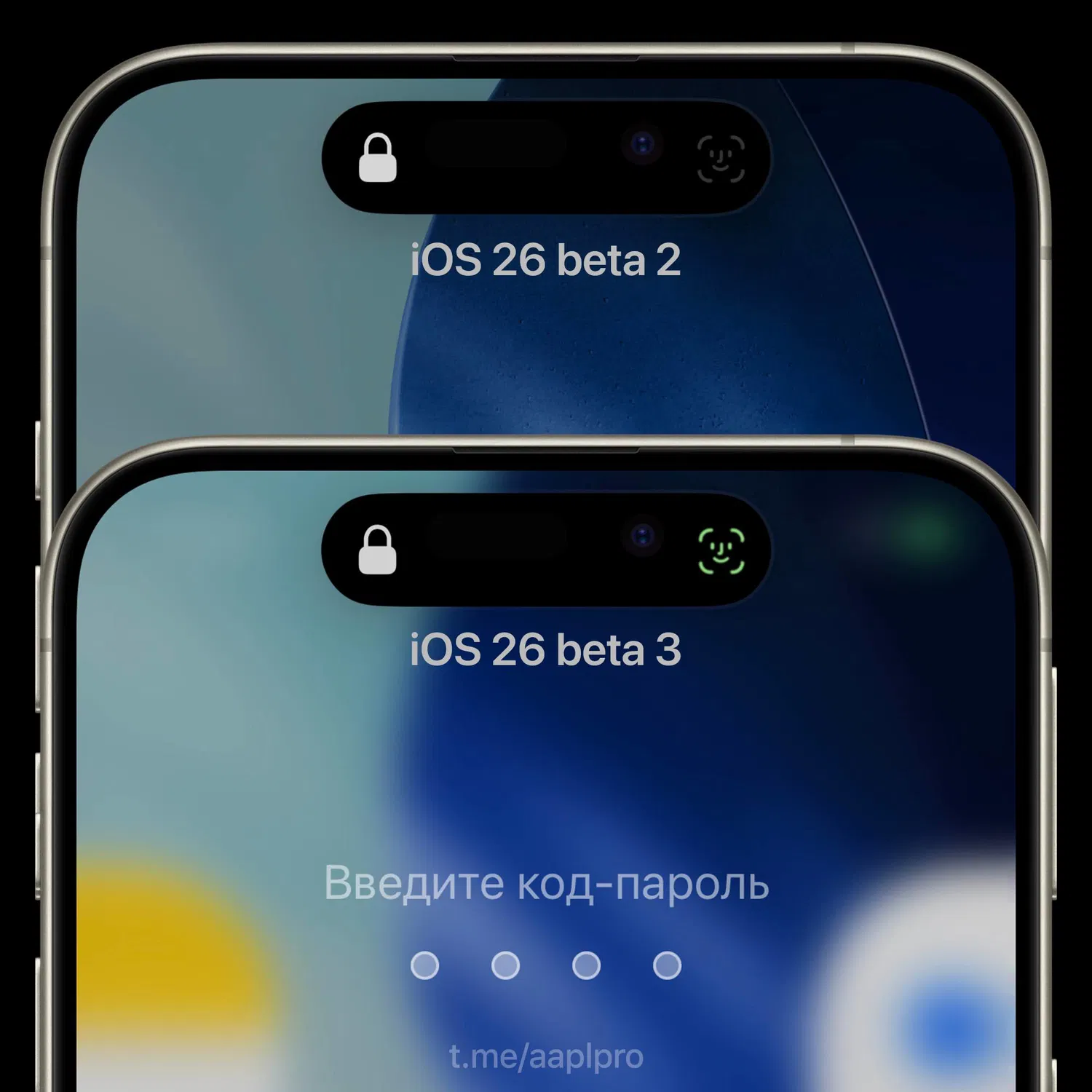 - Face ID — индикатор Face ID в Dynamic Island снова стал зелёным на экране блокировки.