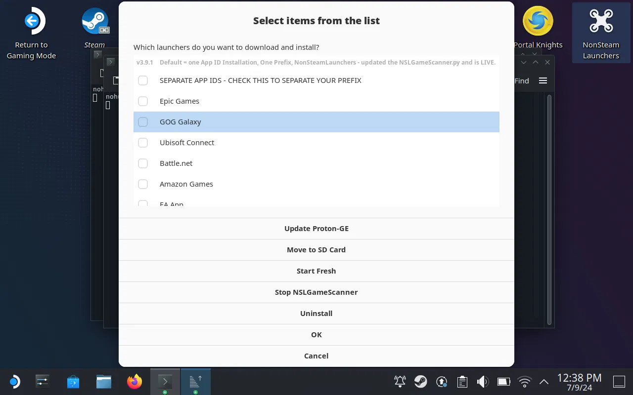 - Щелкните по иконке NonSteam Launchers на рабочем столе, чтобы загрузить и запустить последний скрипт NonSteamLaunchers.sh из репозитория.