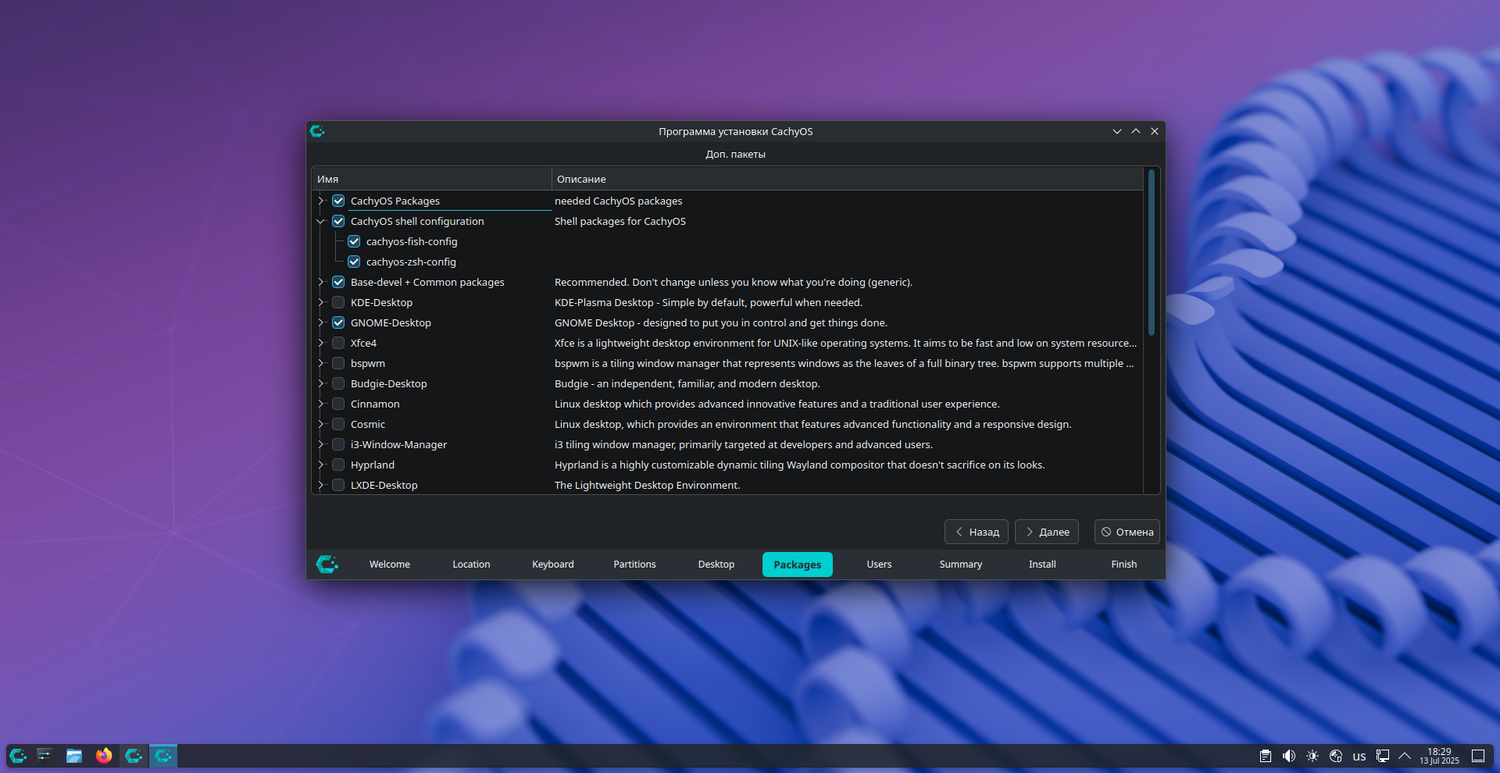 Теперь пользователи могут выбирать оболочку (shell) на этапе установки системы. В списке пакетов доступны варианты cachyos-fish-config и cachyos-zsh-config. Если ни один из них не выбран, по умолчанию устанавливается Bash. Основной оболочкой остается Fish, как и в предыдущих версиях.