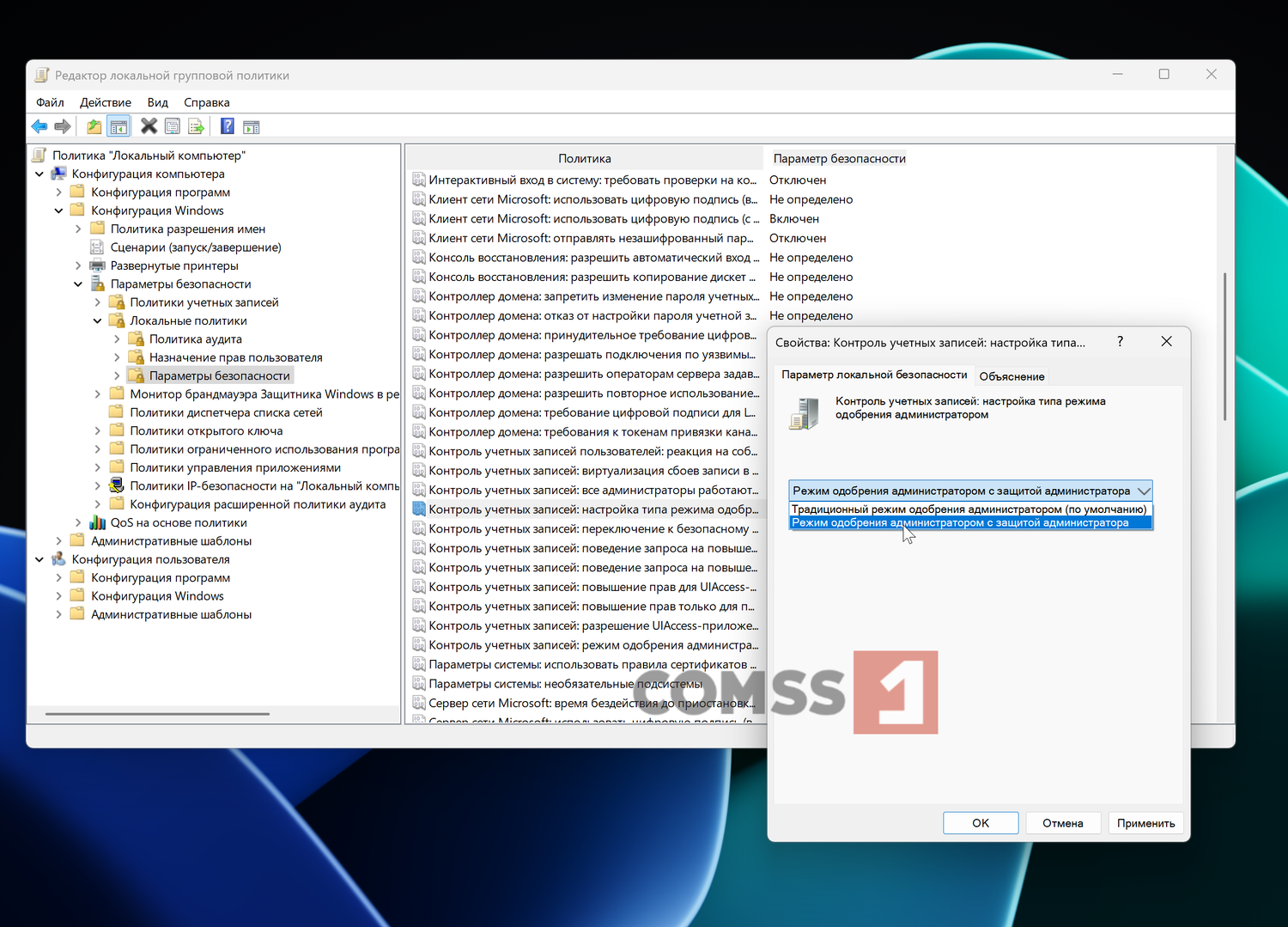 - Выберите Режим одобрения администратором с защитой администратора.