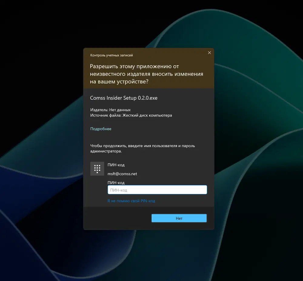 Сначала появляется стандартное окно безопасности Windows, где нужно подтвердить действие: ввести PIN-код или пройти биометрическую идентификацию.