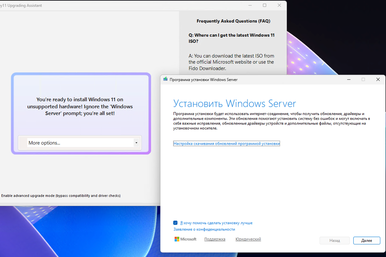 Для Windows 11 также доступны гибридные ISO-образы для обхода ограничений с поддержкой обновления поверх и сохранением данных. Если ваше устройство несовместимо с последней версии Windows, воспользуйтесь нашей инструкцией Как обновиться до Windows 11, версия 24H2 на неподдерживаемом компьютере.