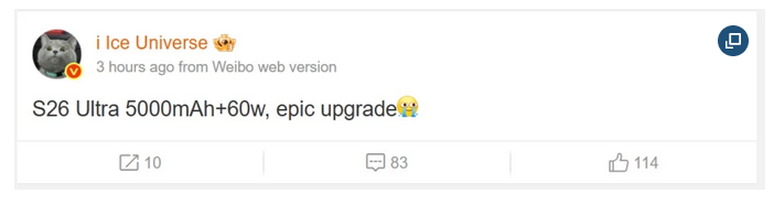 Одним из ключевых обновлений Galaxy S26 Ultra станет аккумулятор емкостью 5000 мАч. Хотя эта характеристика не является революционной, устройство получит поддержку быстрой зарядки мощностью 60 Вт. Это станет самым высоким показателем скорости зарядки в истории смартфонов Samsung, что значительно сократит время ожидания полной зарядки.