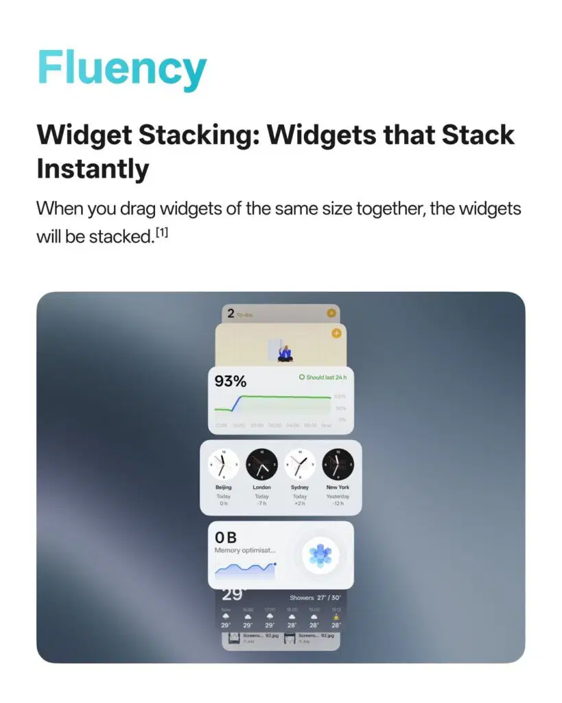 Пользователи получили возможность объединять виджеты одинакового размера простым перетаскиванием. Эта функция упрощает организацию рабочего стола, позволяя создавать аккуратные и функциональные комбинации.