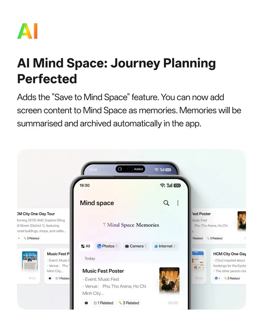Save to Mind Space: функция сохраняет содержимое экрана в виде воспоминаний, автоматически сортируя и обобщая данные.