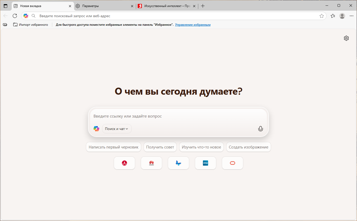 В режиме Copilot, помощник Microsoft теперь встроен в каждый элемент браузера. Он расположен рядом с адресной строкой и на стартовой странице, а его запуск доступен в один клик. Copilot способен: