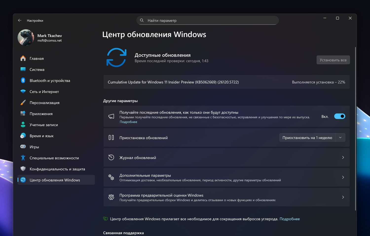 Примечание. Microsoft заблокировала установку обновлений для инсайдеров Windows 11 в России и Беларуси. Для установки обновления KB5062669 (Build 26120.5722) вы можете использовать наши DNS-серверы: Установка инсайдерских сборок Windows 11 с помощью Comss.one DNS.