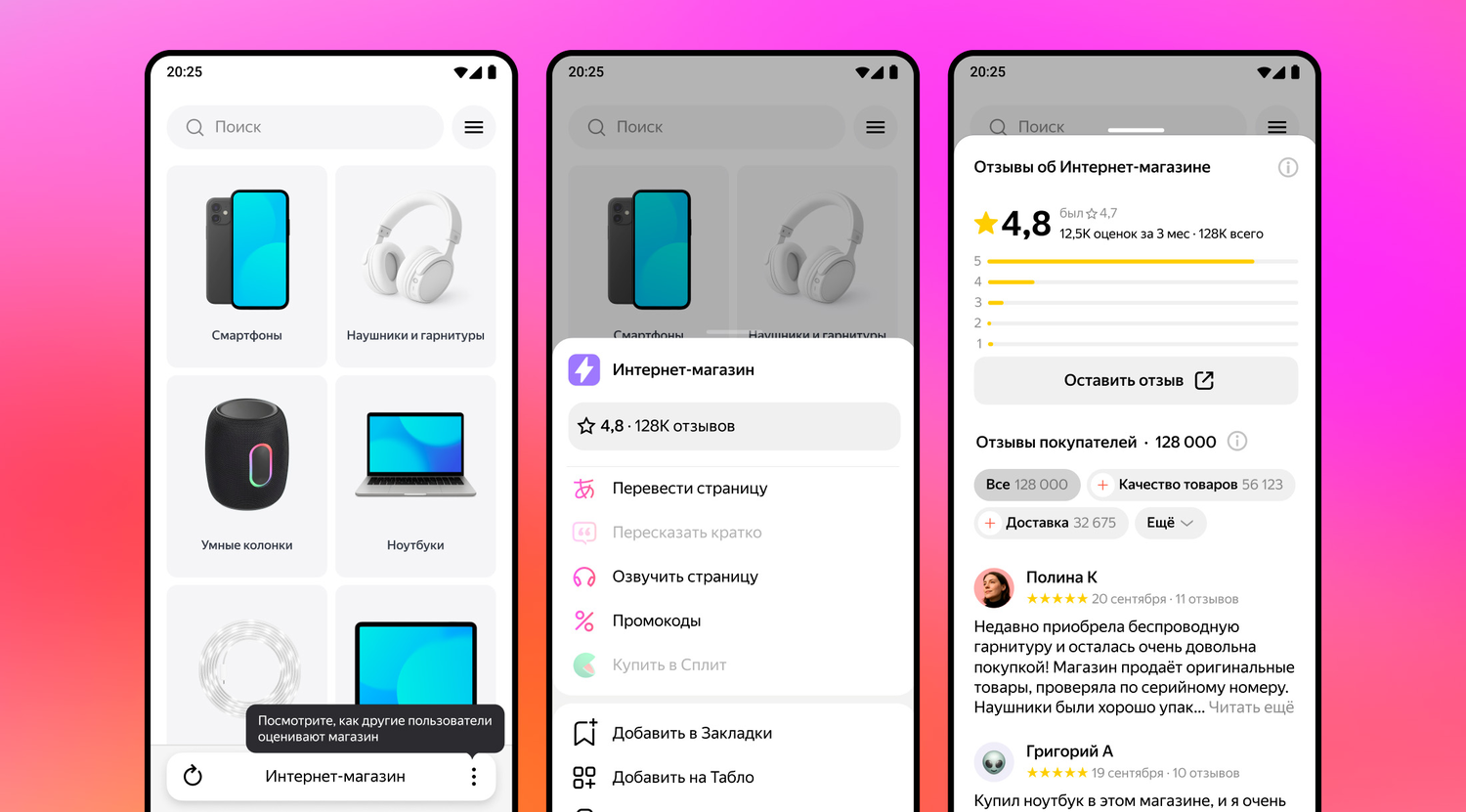 Яндекс продолжает развивать возможности своего фирменного браузера, делая его ещё полезнее при повседневном использовании. В последнем обновлении Яндекс Браузера появилась функция, позволяющая мгновенно узнать рейтинг интернет-магазина при его посещении. Это поможет пользователям быстрее оценить надёжность сайта и принять обоснованное решение о покупке.