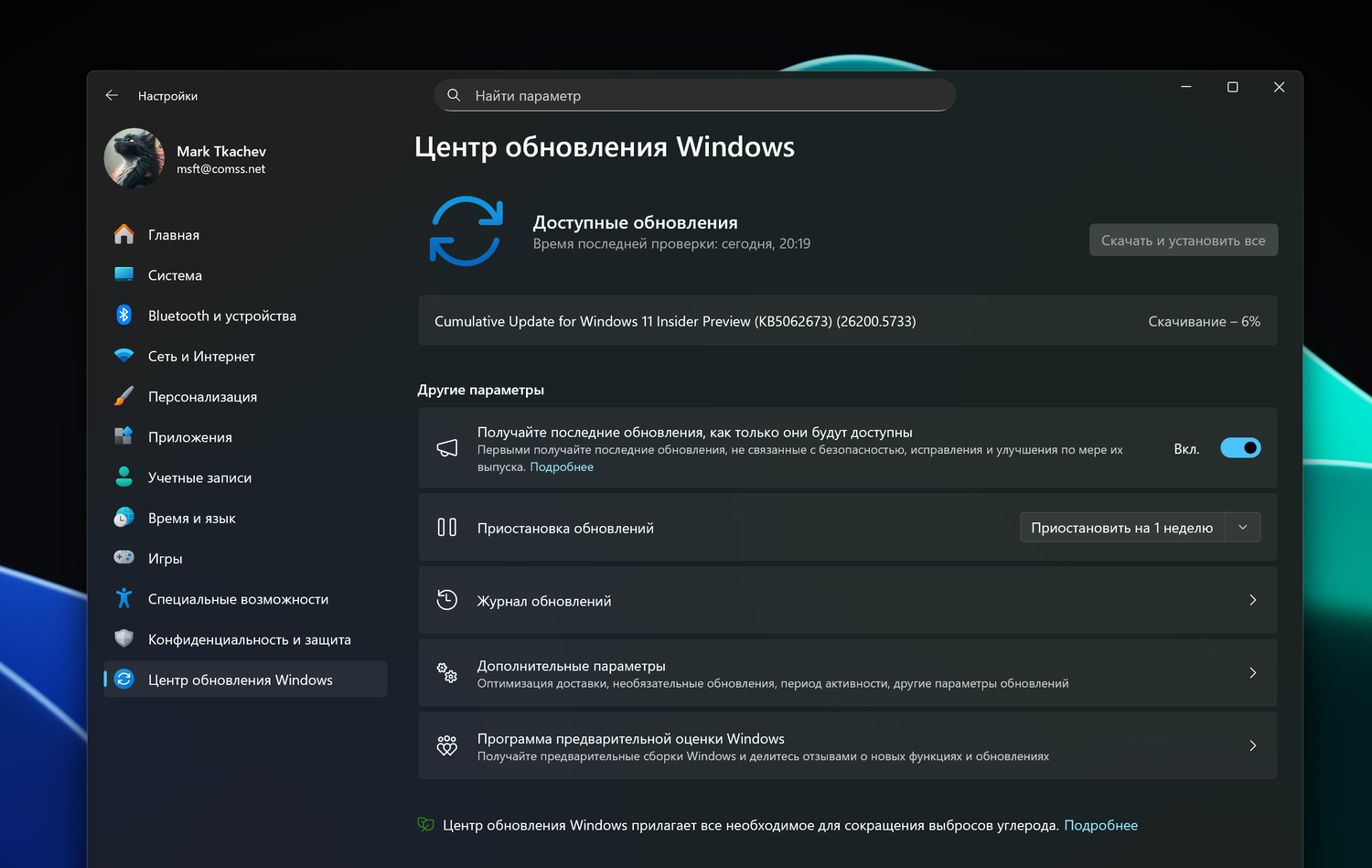 Примечание. Microsoft заблокировала установку обновлений для инсайдеров Windows 11 в России и Беларуси. Для установки обновления KB5062673 (Build 26200.5733) вы можете использовать наши DNS-серверы: Установка инсайдерских сборок Windows 11 с помощью Comss.one DNS.