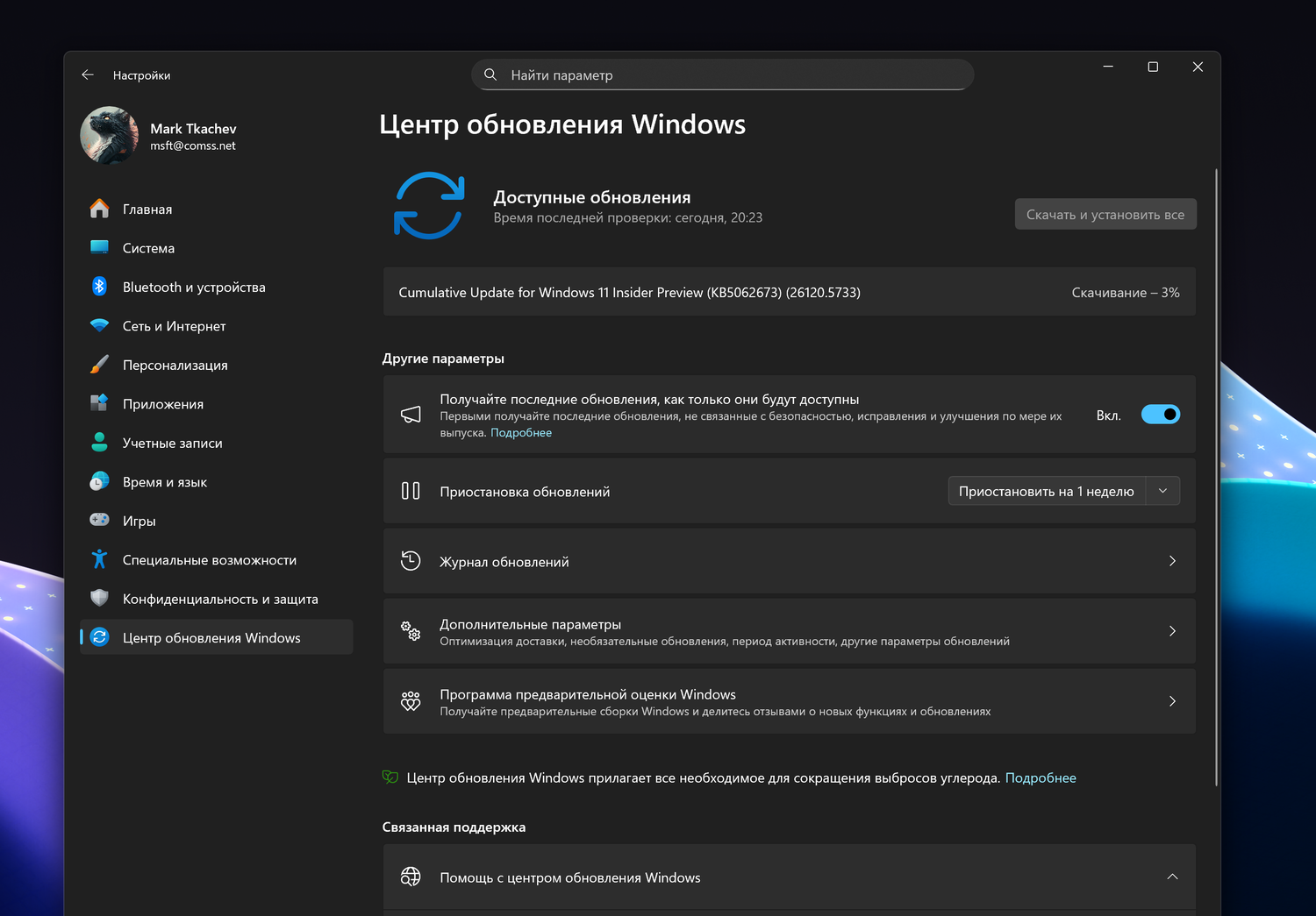 - Инсайдеры на канале Beta, желающие первыми получать функции, которые постепенно разворачиваются, могут включить переключатель «Получайте последние обновления, как только они будут доступны» в разделе Параметры > Центр обновления Windows. Со временем функции будут постепенно распространяться среди всех пользователей с включённым переключателем. Если переключатель останется выключенным, новые функции будут поступать на устройство постепенно, по мере готовности.
