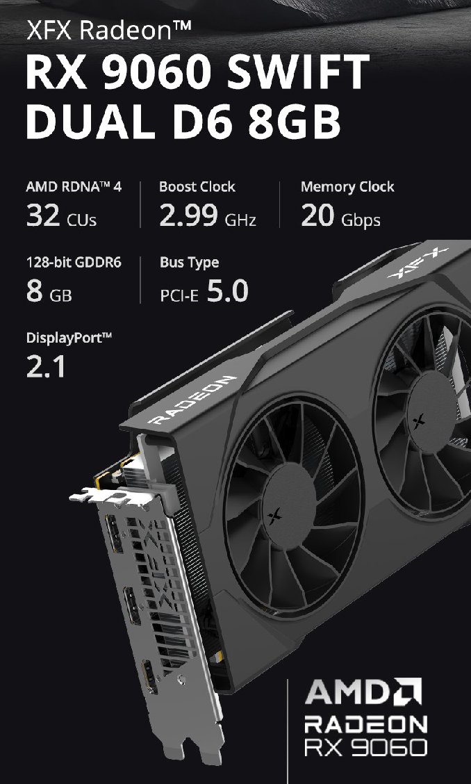 AMD представила видеокарту Radeon RX 9060 без приставки XT — 28 вычислительных блоков и 8 ГБ памяти