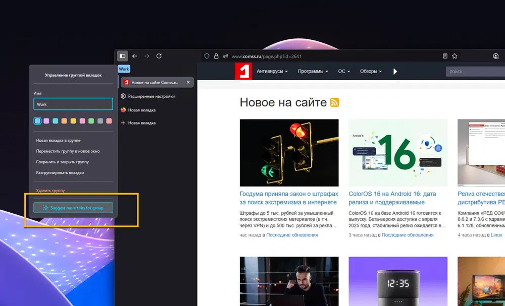 Пользователи сами просили добавить автоматическую группировку вкладок — обсуждения на Mozilla Connect это подтверждают. Функция полезна тем, у кого десятки или сотни открытых вкладок. Работает она не идеально, но для многих это удобный способ навести порядок.
