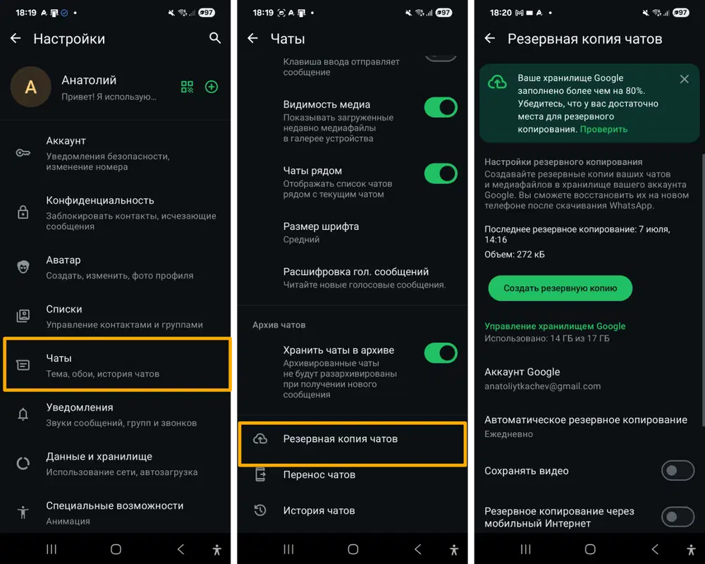 Как создать бэкап данных WhatsApp на смартфоне