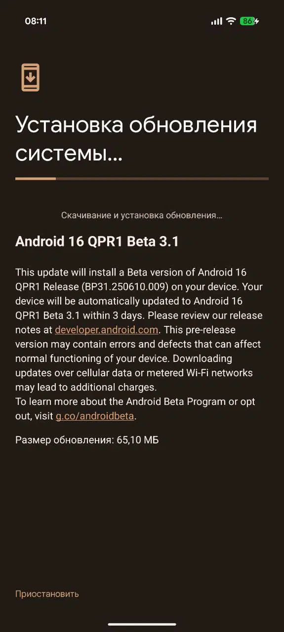 Пользователи, зарегистрированные в программе Android Beta for Pixel, получат уведомление об обновлении Beta 3.1 через OTA. Для установки достаточно дождаться уведомления и следовать инструкциям. Новых функций в этом обновлении нет, так как это точечный релиз, направленный на доработку перед финальным выпуском.