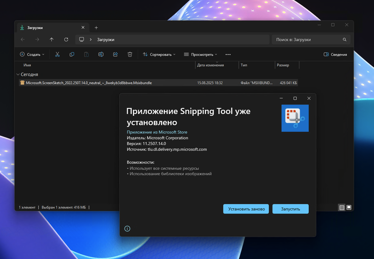 Обновление «Ножниц» до версии 11.2507.14.0 исправляет эту проблему: теперь можно выбрать конкретное окно для записи. Однако область захвата остается фиксированной — при изменении размеров или перемещении окна запись не будет подстраиваться.