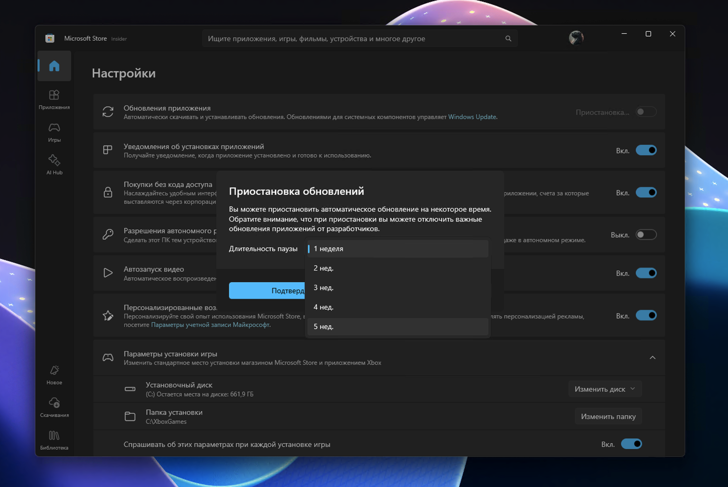 Однако скоро Microsoft уберет эту настройку. Взамен появится выбор: приостановить обновления на 1 неделю или максимум на 5 недель. По истечении этого срока приложения автоматически обновятся до последней версии.