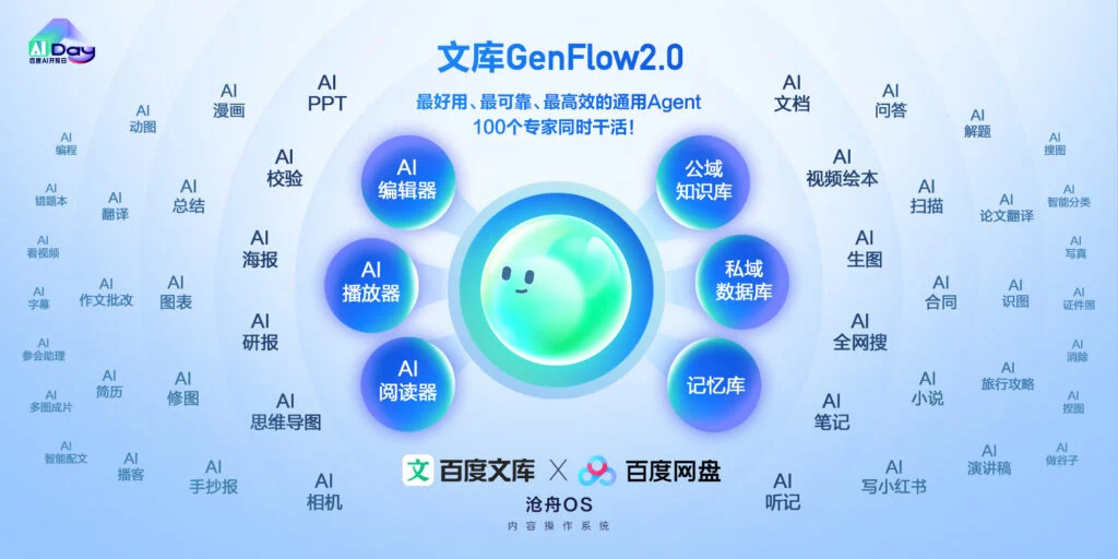GenFlow 2.0 использует обширную базу контента Baidu. Так, Baidu Wenku насчитывает более 1,4 млрд профессиональных материалов и имеет 97 млн активных ИИ-пользователей ежемесячно. Baidu Netdisk обслуживает более 1 млрд зарегистрированных пользователей, среди которых 200 млн активны ежемесячно, а 80 млн применяют функции на базе ИИ.