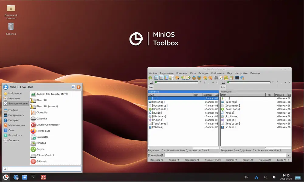 MiniOS 5.0.0 — это зрелый релиз компактного и функционального дистрибутива Linux, который одинаково хорошо подходит как для повседневной работы, так и для задач администрирования и восстановления систем. Благодаря переходу на Debian 13, переработанным утилитам, обновлённому интерфейсу и улучшенной совместимости с современным оборудованием MiniOS остаётся одним из самых интересных проектов среди лёгких Linux-дистрибутивов в 2025 году.