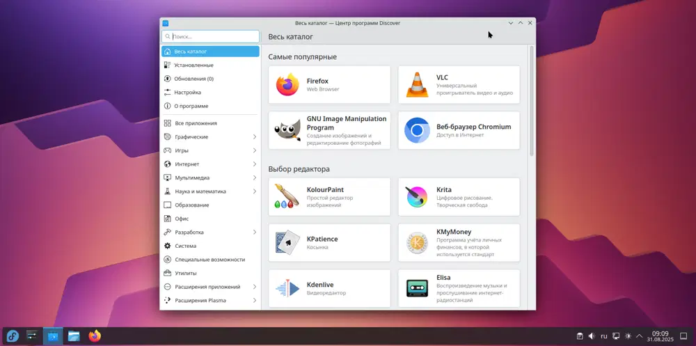 Fedora KDE настраивается и управляется из графического окружения и не требует использования терминала.