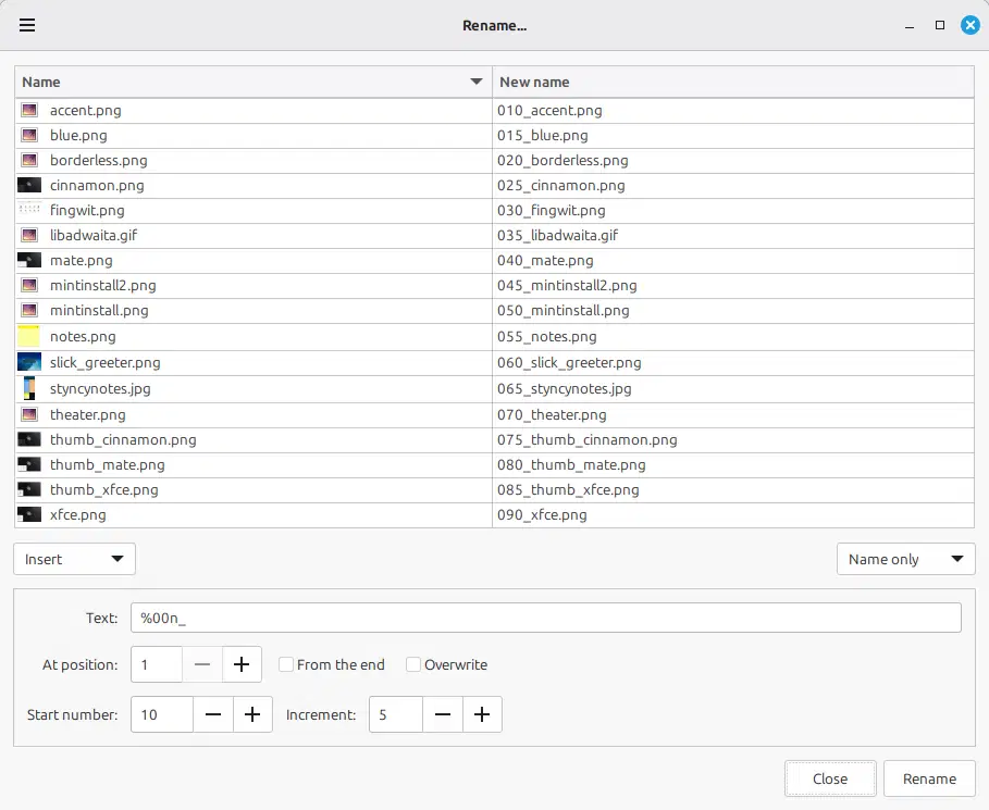 При переименовании нескольких файлов с использованием нумерации теперь можно добавлять ведущие нули, задавать начальный номер и шаг инкремента.