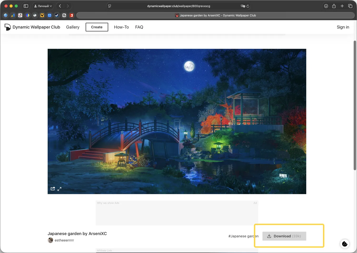 - Откройте выбранную страницу обоев и нажмите кнопку Download.