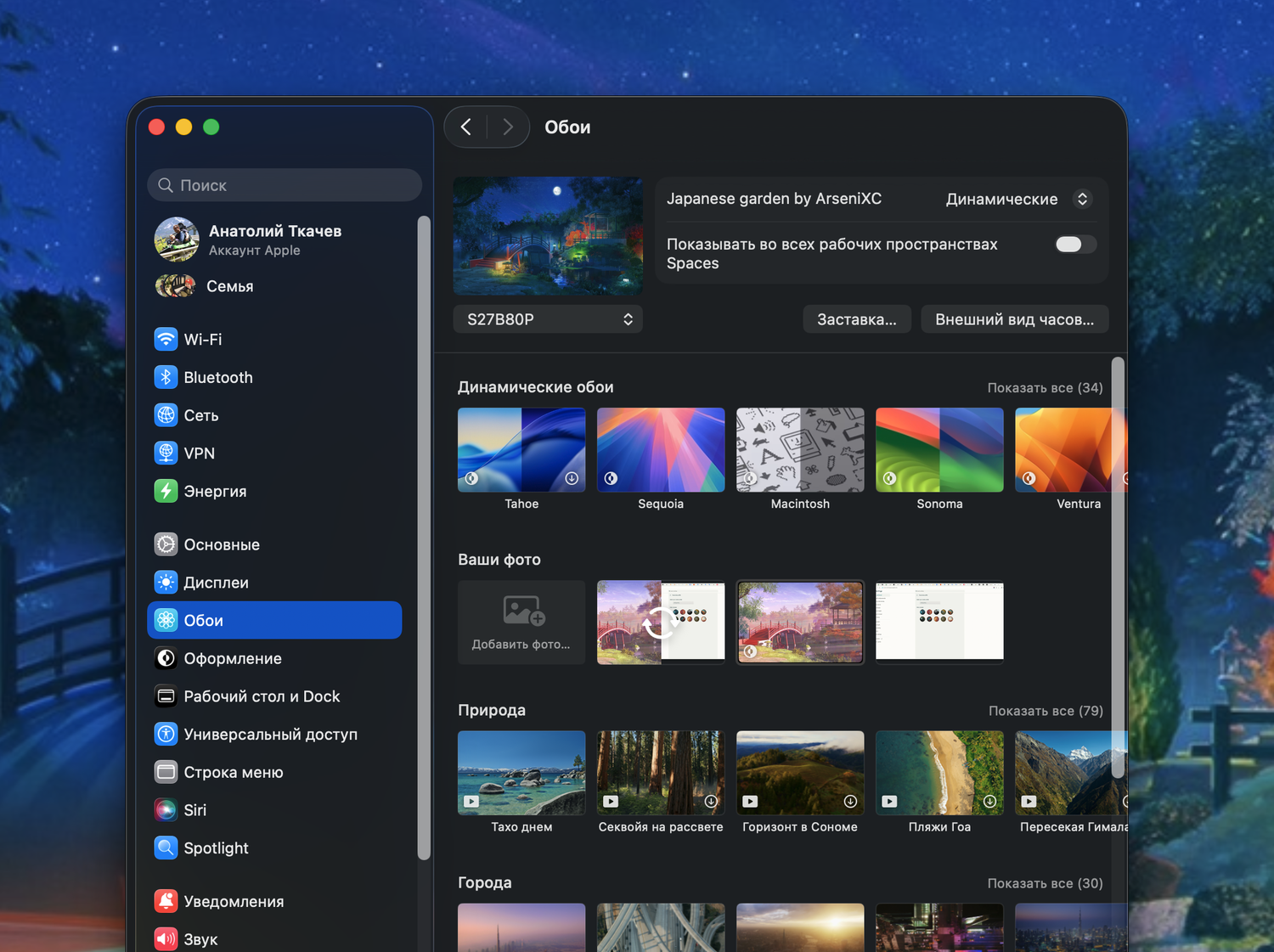 - В меню «Системные настройки > Обои» можно настроить выбранные обои.
