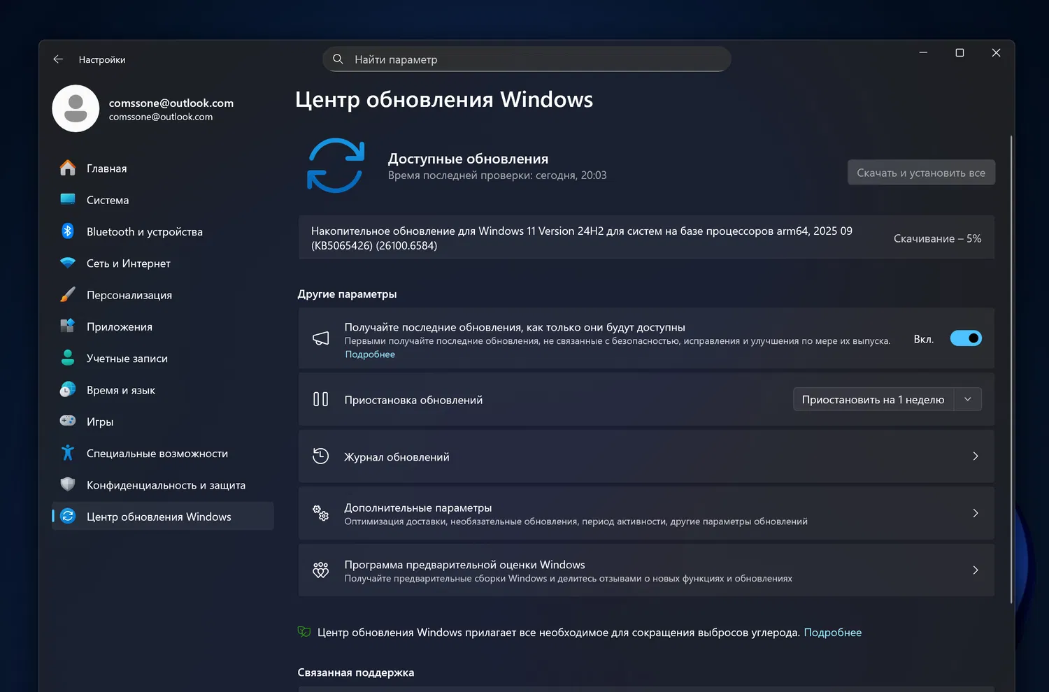 Накопительный пакет обновления KB5065426 (Build 26100.6584) предназначен для Windows 11, версия 24H2 (Windows 11 2024 Update) и Windows 11 LTSC 2024 на базе процессоров x64 (amd64) и ARM64. 1 октября 2024 года Microsoft запустила развертывание Windows 11 2024 Update на поддерживаемых устройствах. Для перехода на новую версию вы можете ознакомиться с отдельным руководством Как обновиться до Windows 11, версия 24H2. Официальные ISO-образы Windows 11, версия 24H2 и Windows 11 Корпоративная LTSC 2024 доступны для чистой установки ОС.