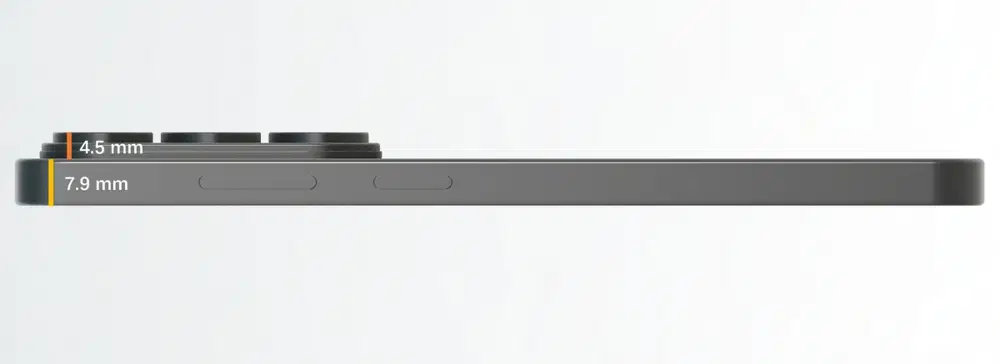 Наибольшее изменение коснется блока камер: его толщина увеличится почти в два раза — с 2,4 мм до 4,5 мм. Причиной стала необходимость размещения новых объективов, включая обновлённую основную камеру и переработанные телеобъективы.