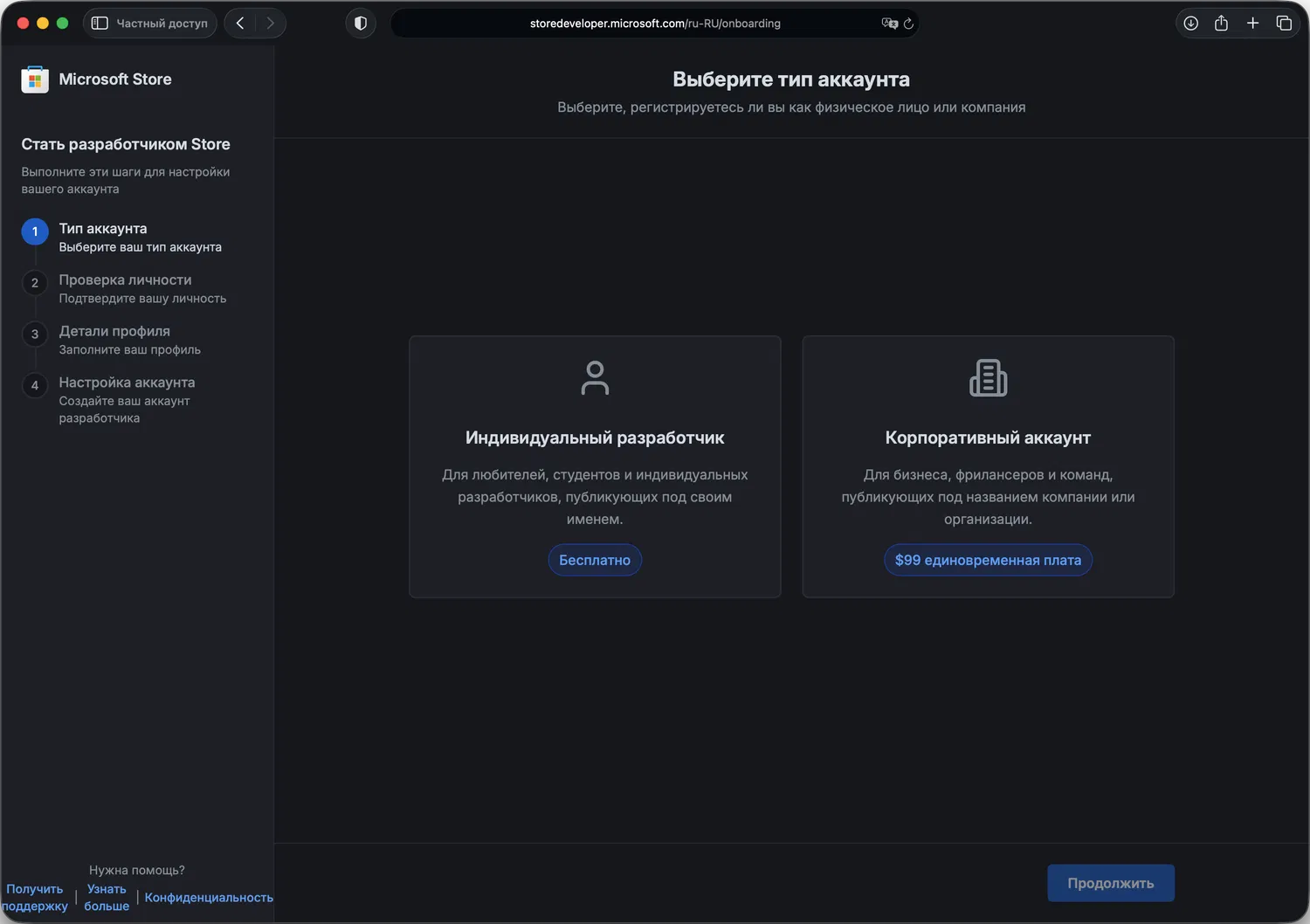 Для начала необходимо войти на Платформу разработчиков Microsoft Store с личной учётной записью и пройти новый пошаговый интерфейс регистрации. Перед публикацией потребуется верификация личности с помощью документа, удостоверяющего личность, и селфи.