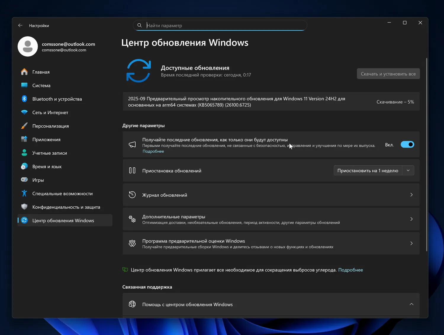 Обновлено: 30.09.2025. Обновление KB5065789 (Build 26100.6725) Preview для Windows 11, версия 24H2 доступно для установки в Центре обновления Windows как «необязательное обновление» и для ручной загрузки в Каталоге Центра обновления Майкрософт.