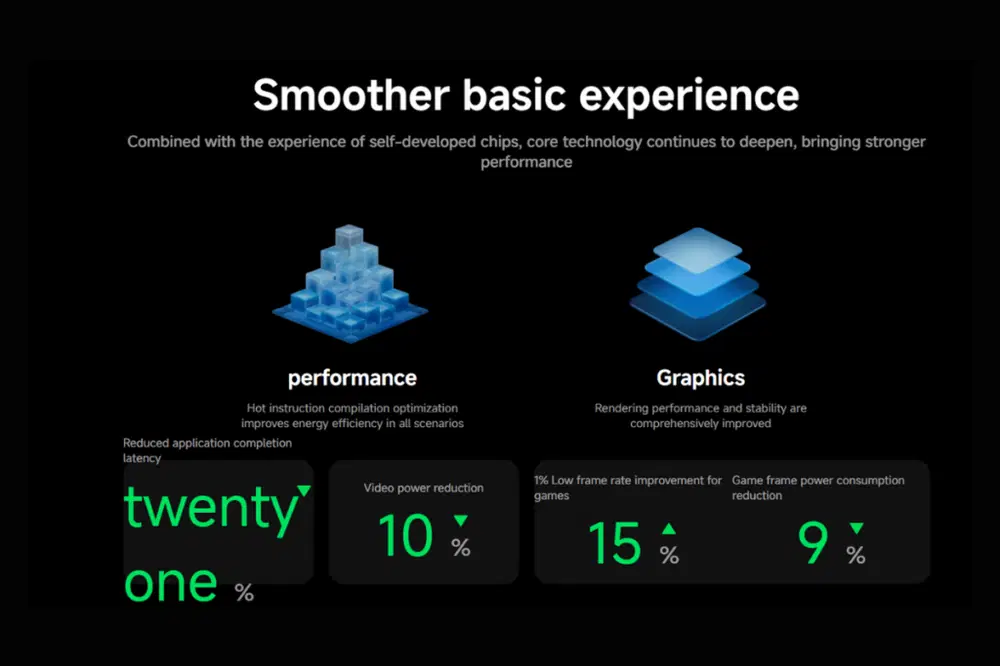 Помимо внешних изменений, HyperOS 3 содержит множество технических улучшений. Повышена энергоэффективность на 10% и снижена нагрузка на центральный процессор на 4%. Также заявлено увеличение скорости запуска приложений на 21% и снижение энергопотребления при воспроизведении видео на 10%. Для геймеров улучшена частота кадров на 15% и снижена задержка сенсорного отклика на 9%. Оптимизировано более 100 системных анимаций для обеспечения плавного и отзывчивого взаимодействия.