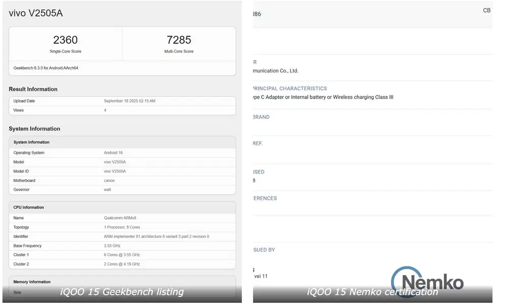 Кроме того, глобальная версия iQOO 15 появилась в сертификационной базе Nemko. Это подтверждает наличие поддержки беспроводной зарядки, которой не было в предыдущих поколениях.