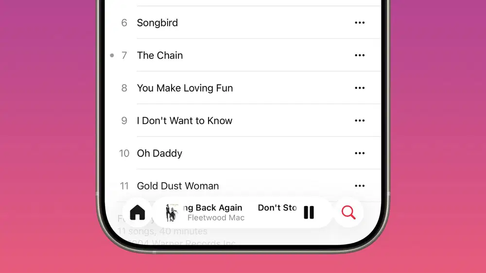 В Apple Music появился новый способ переключения треков: достаточно провести пальцем по области с названием песни, чтобы перейти к следующей или предыдущей композиции.