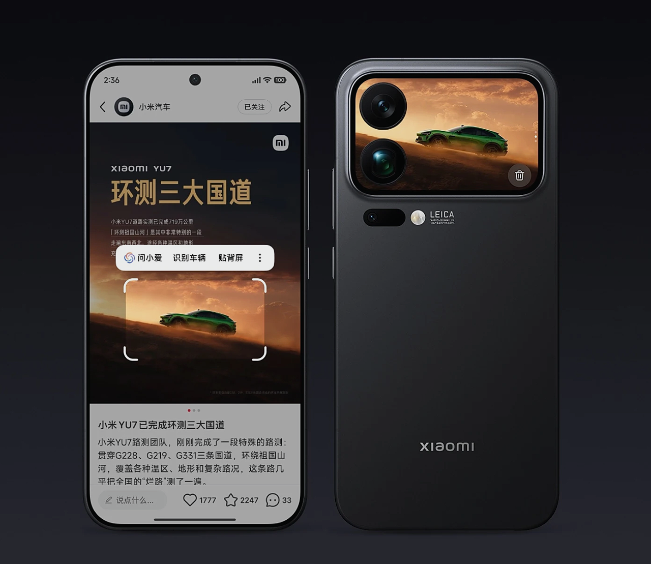 Модель Xiaomi 17 Pro выделяется компактными размерами (151.1 x 71.8 x 8 мм) и весом в 192 грамма. Одной из главных особенностей устройства стал дополнительный 2.7-дюймовый AMOLED-дисплей с разрешением 904 x 572 пикселя, который Xiaomi назвала «Magic Back Screen». Этот экран, интегрированный в блок основной камеры, имеет частоту обновления 120 Гц и пиковую яркость 3500 нит. Он может использоваться для отображения уведомлений, в качестве часов (Always-On Display) или как видоискатель для селфи, снятых на основную камеру.