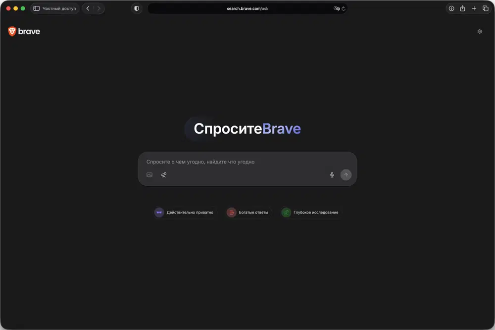 Компания Brave Software, разработчик ориентированного на конфиденциальность браузера и поисковой системы, представила новый сервис «Спросите Brave» (Ask Brave), который объединяет классический поиск и ИИ-чат в одном интерфейсе.
