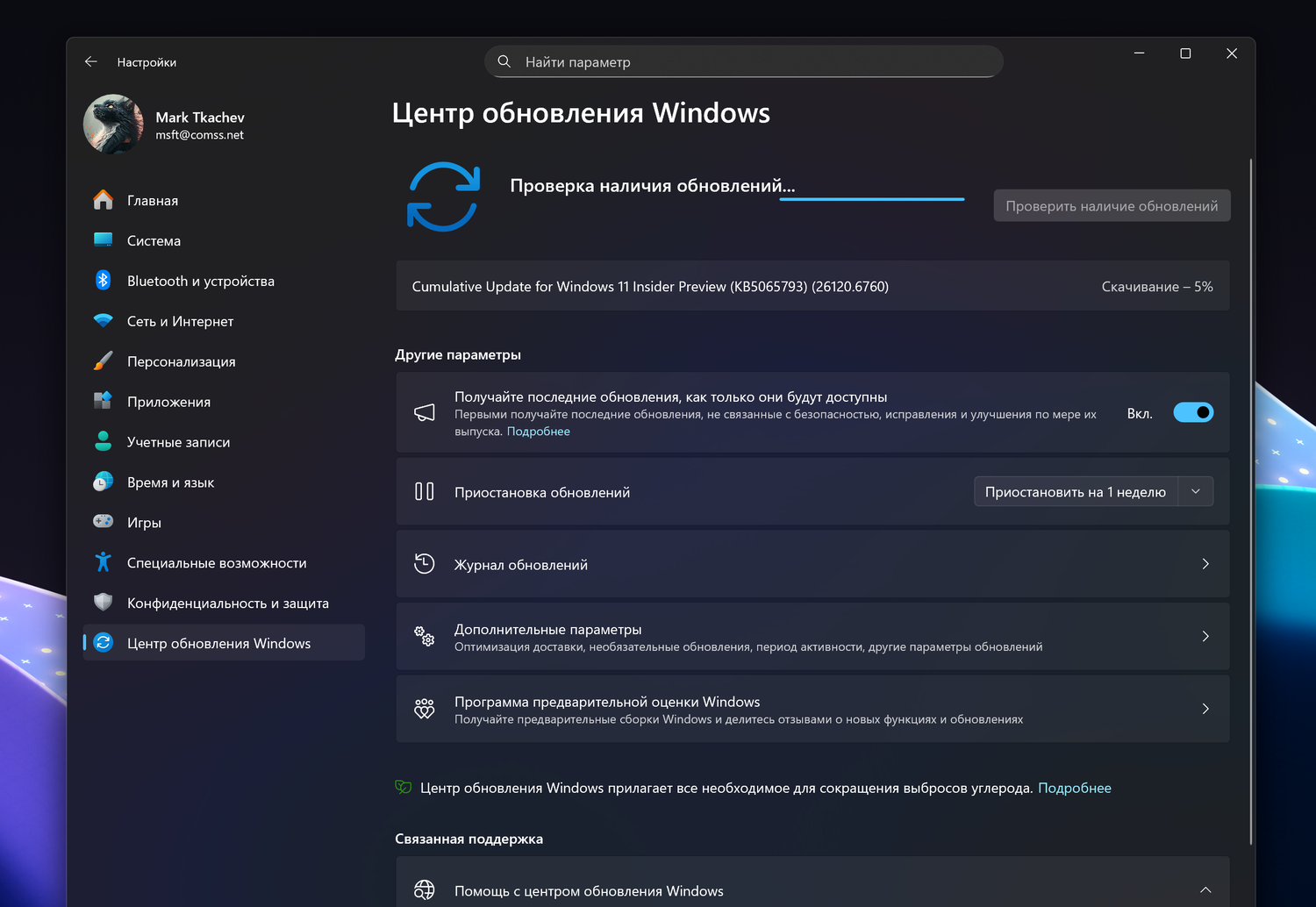 Примечание. Microsoft заблокировала установку обновлений для инсайдеров Windows 11 в России и Беларуси. Для установки обновления KB5065793 (Build 26120.6760) вы можете использовать наши DNS-серверы: Установка инсайдерских сборок Windows 11 с помощью Comss.one DNS.