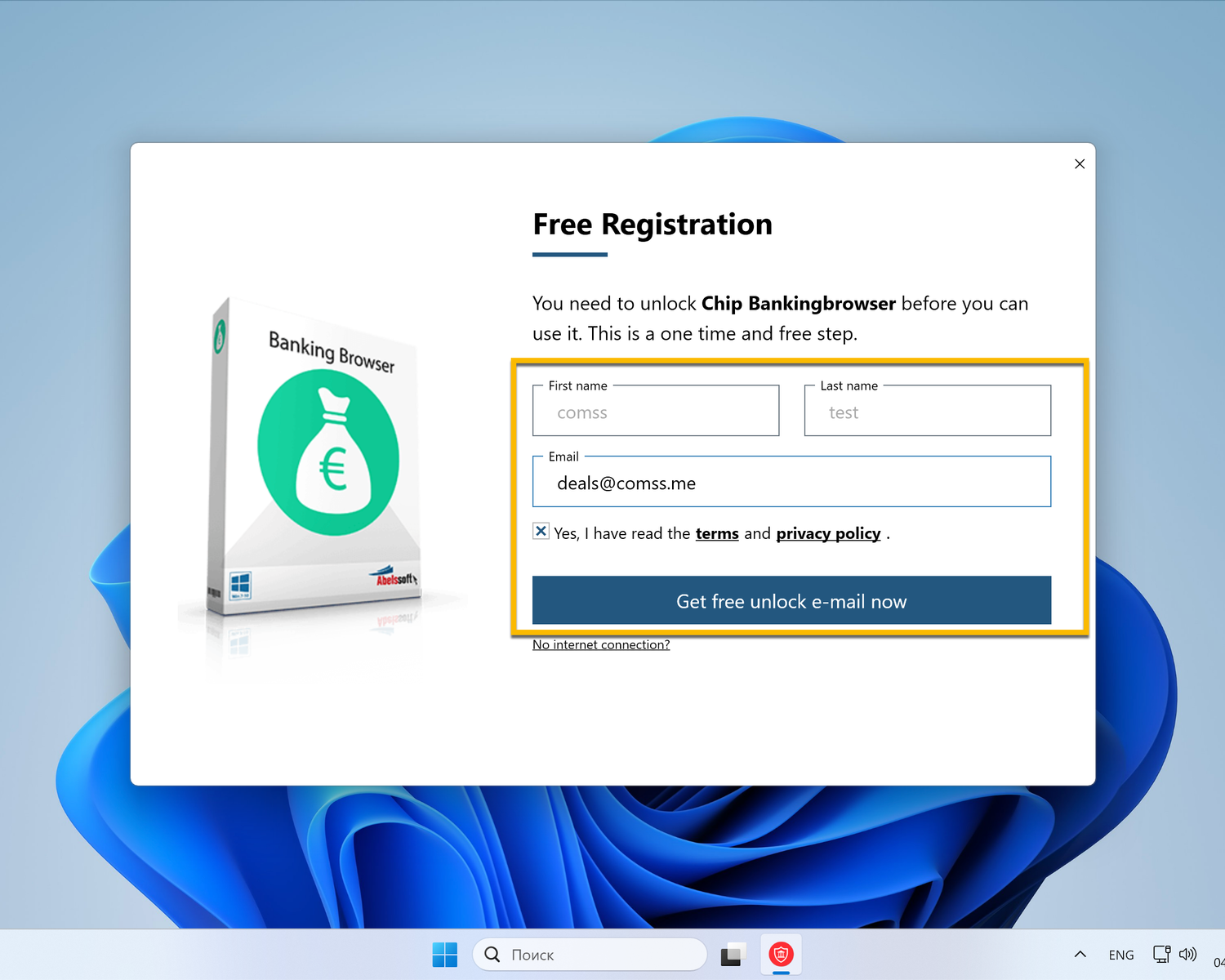 Для получения бесплатной лицензии Abelssoft BankingBrowser 2026 (по акции называется Chip Bankingbrowser) выполните следующее: