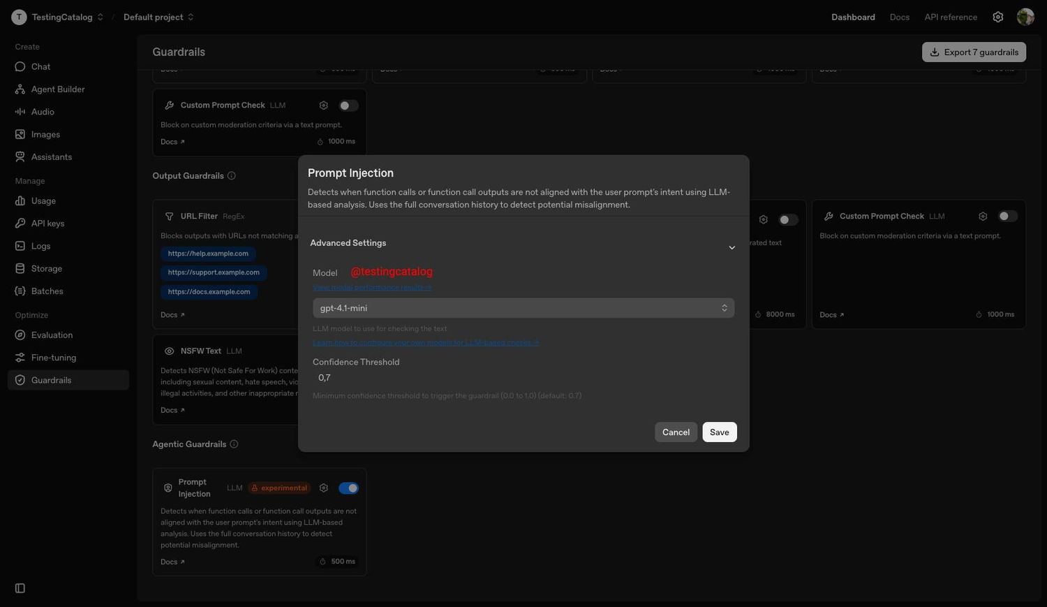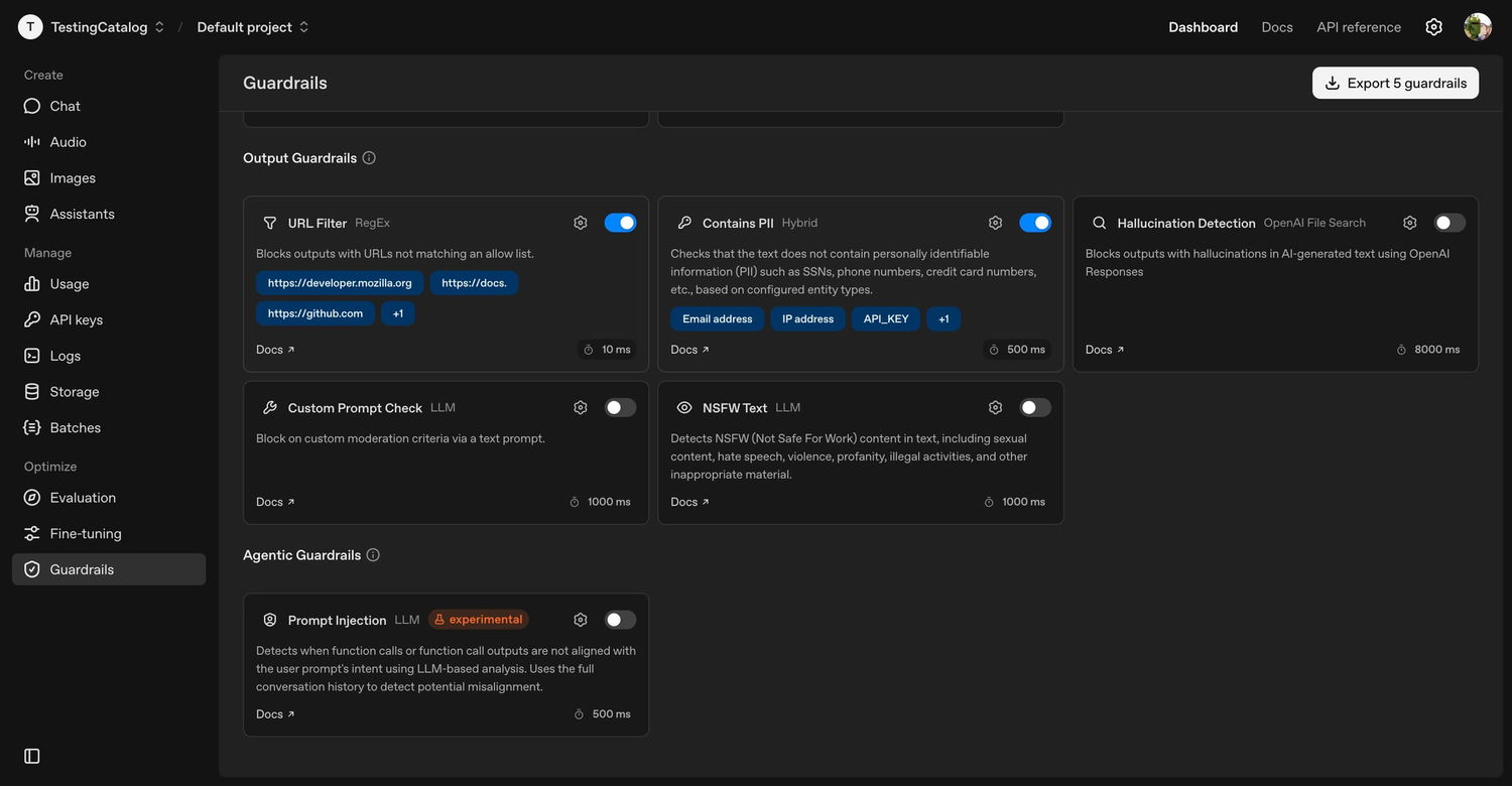 Параллельно в интерфейсе платформы появляется раздел Guardrails, ориентированный на контроль безопасности API и приложений. Панель управления позволит более детально настраивать фильтрацию данных, выявлять галлюцинации модели, попытки внедрения вредоносных подсказок, джейлбрейки и другие угрозы.
