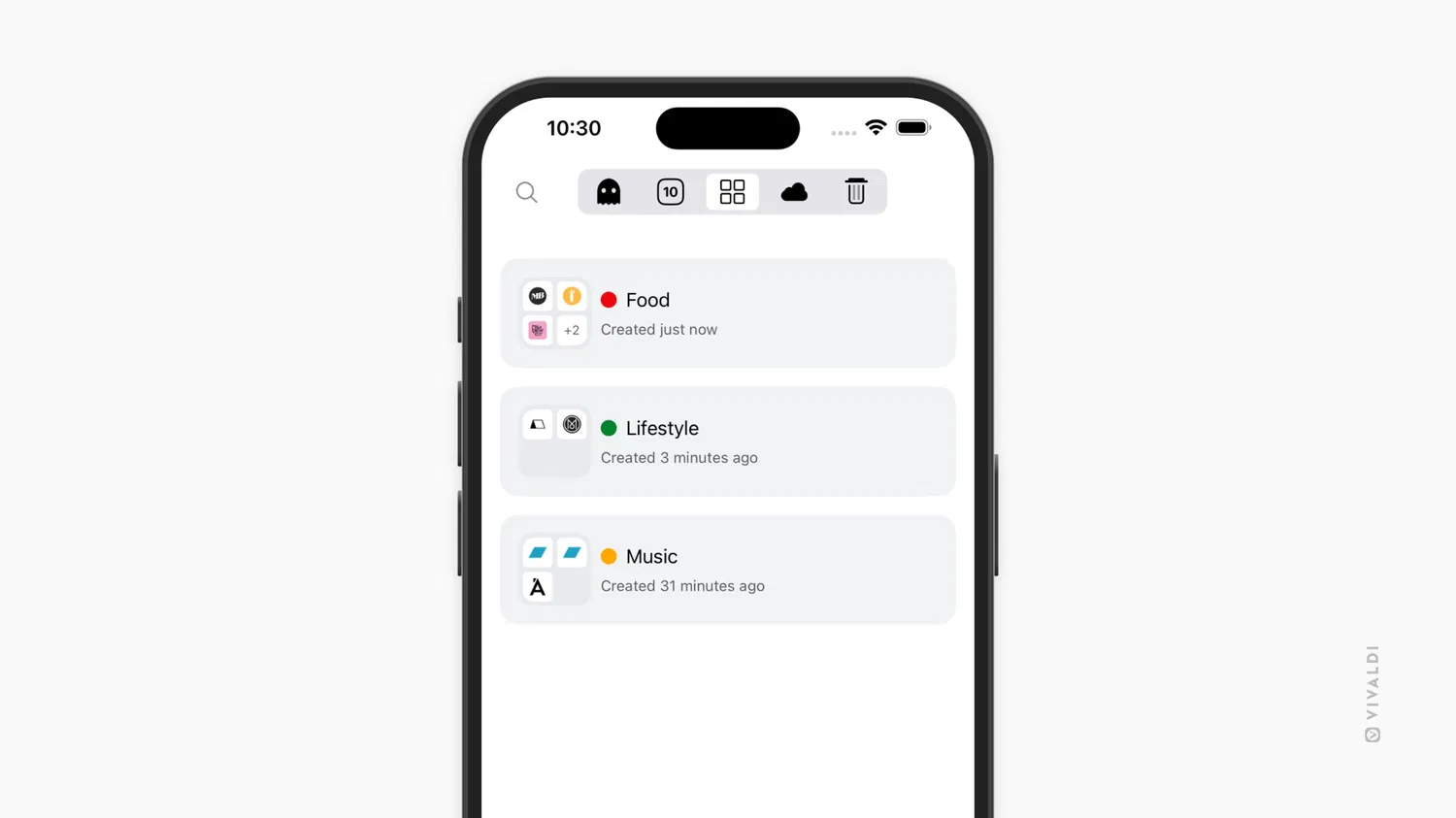 В версии 7.6 переключатель вкладок получил отдельную панель для групп, что делает навигацию спокойнее и нагляднее. Откройте переключатель — и увидите группы в виде аккуратных карточек. При выборе группы вы увидите все вкладки внутри и перейти к нужной в одно касание.