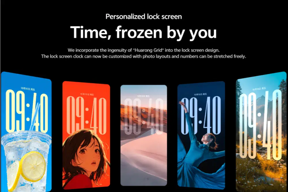 Экран блокировки получил динамические Mirror Screen Effects, синхронизированные с новой визуальной системой. Часы можно перемещать в любое место, а фотомодули — перестраивать по своему усмотрению. Добавлены новые стили часов и готовые варианты компоновки.
