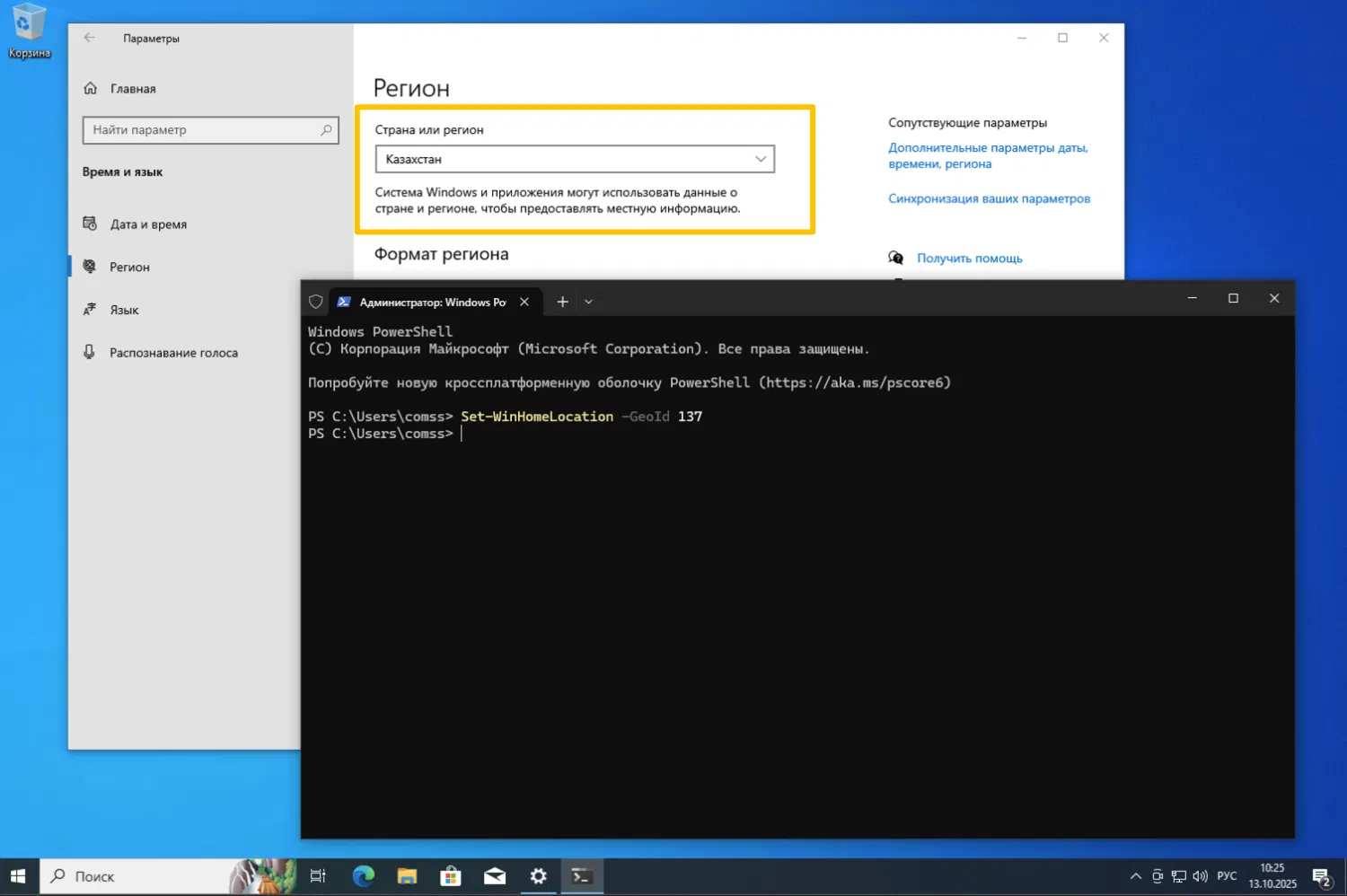 - Измените регион вручную: Параметры > Время и язык > Регион > Страна или регион (например, на Казахстан).