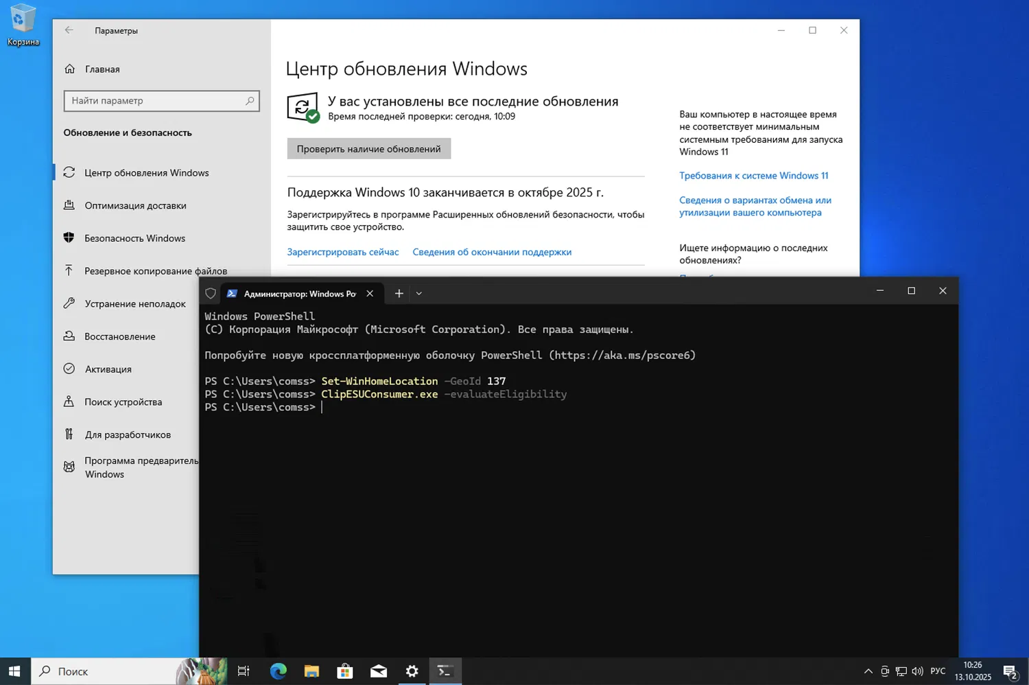 В этой статье рассмотрены шаги для официального продления поддержки Windows 10 на один год с помощью ESU, а также способ обхода региональных ограничений, актуальный для пользователей из России, Беларуси и других стран, где прямая регистрация недоступна. Вы также можете использовать специальный скрипт для регистрации Windows 10 Consumer ESU.