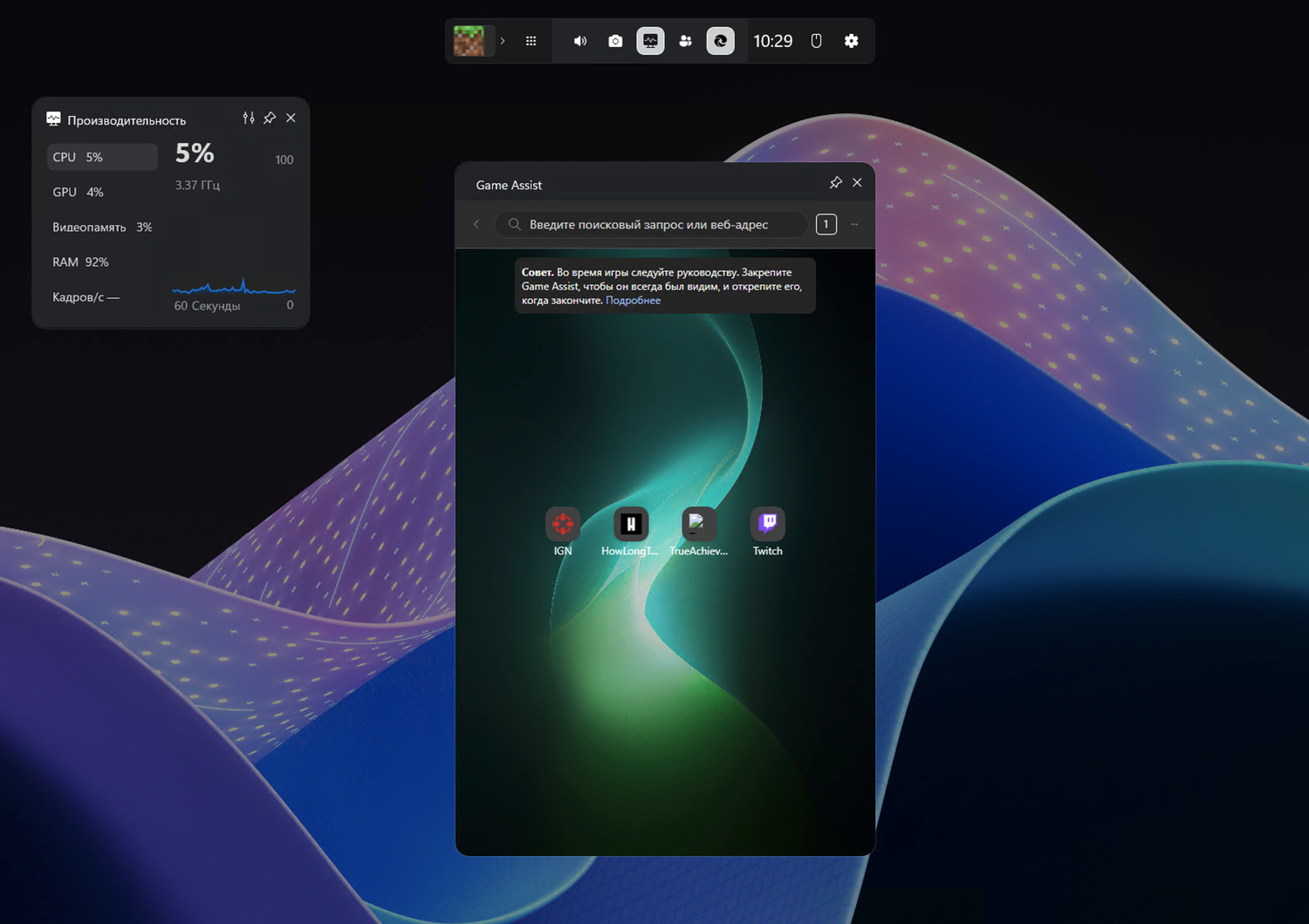 Нажмите значок клавиши Windows (клавиша Windows) + G, чтобы открыть игровую панель и получить доступ к Game Assist. Убедитесь, что у вас также установлены самые последние обновления Edge и Windows 11.
