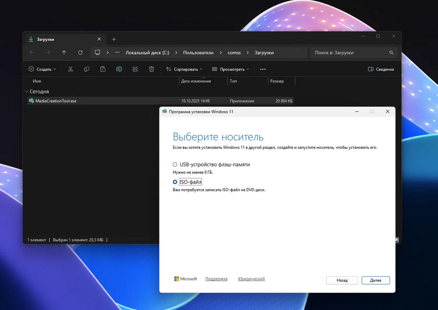 Созданный установочный носитель можно использовать для чистой установки Windows 11 25H2, обновления с Windows 10 или предыдущих сборок Windows 11, а также для восстановления системы.