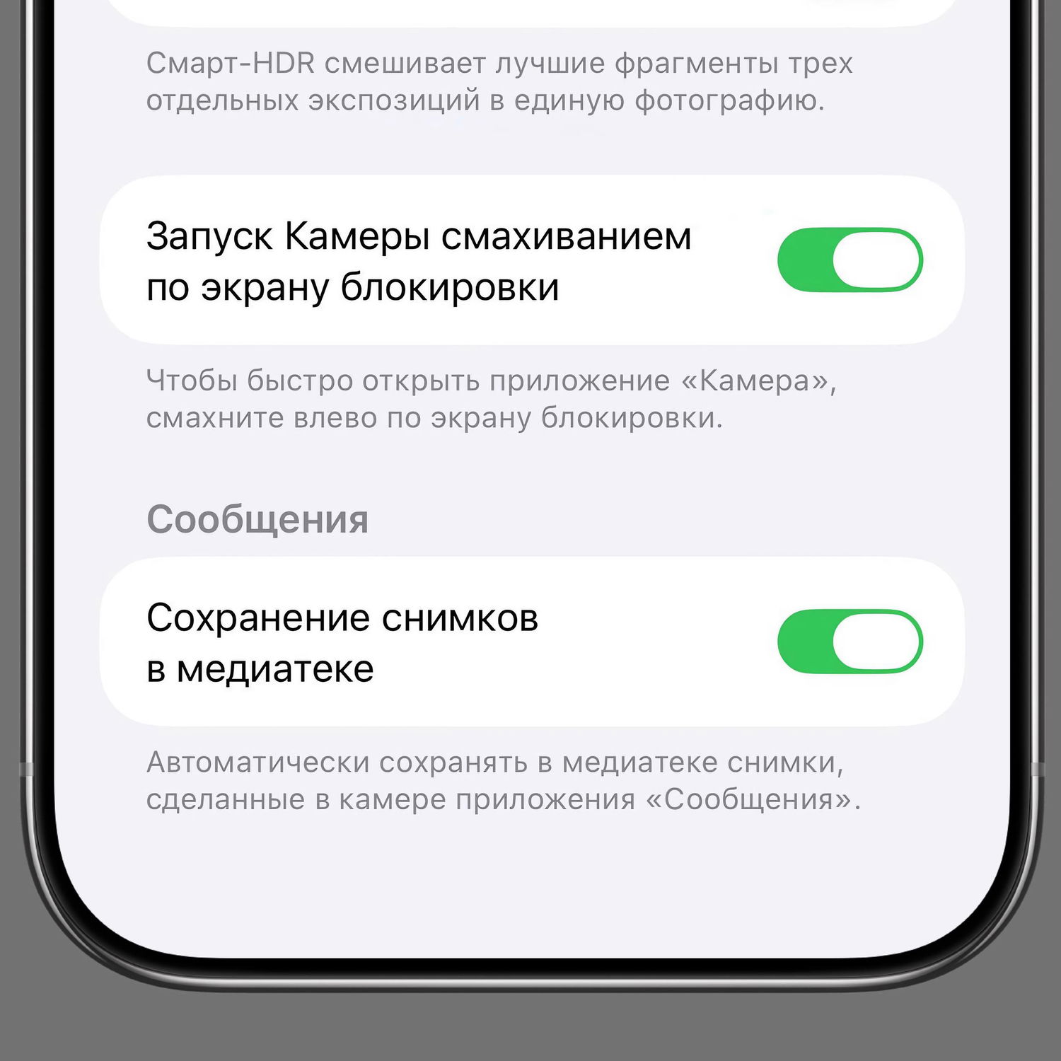 - Камера — появилась возможность отключить или включить запуск камеры свайпом влево на экране блокировки.