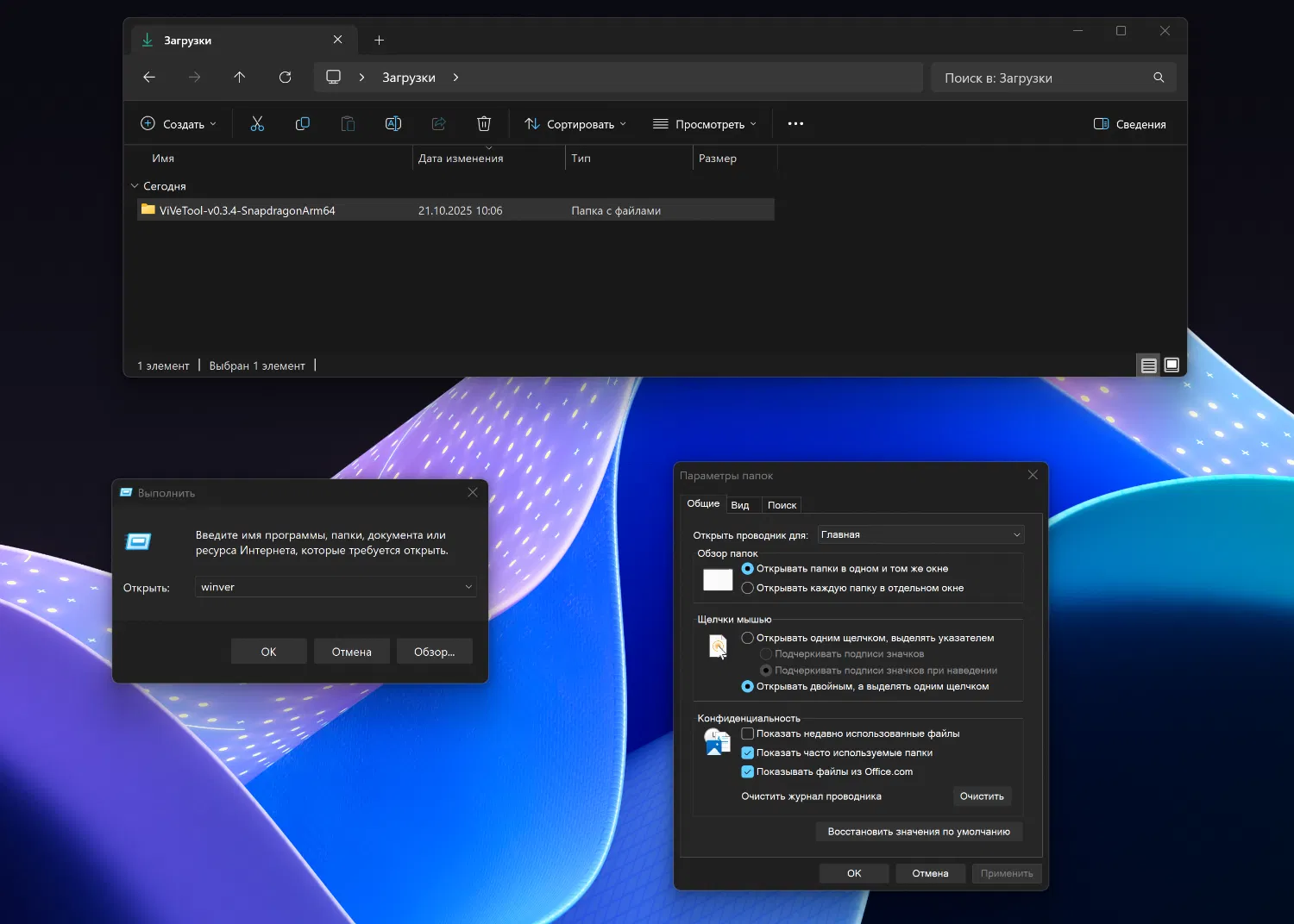 Как включить тёмную тему для окон «Выполнить» и «Параметры папок» в Windows 11 на каналах Dev и Beta