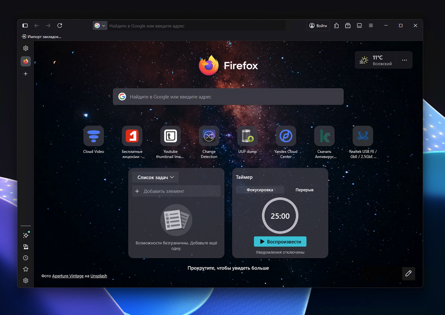 Теперь компания добавила два новых виджета — Списки задач и Таймер фокуса. Их тестировали начиная с версии Firefox 143 (на каналах Beta и Nightly), а теперь они добрались и до стабильного релиза. По умолчанию они выключены, но при желании их можно активировать вручную.