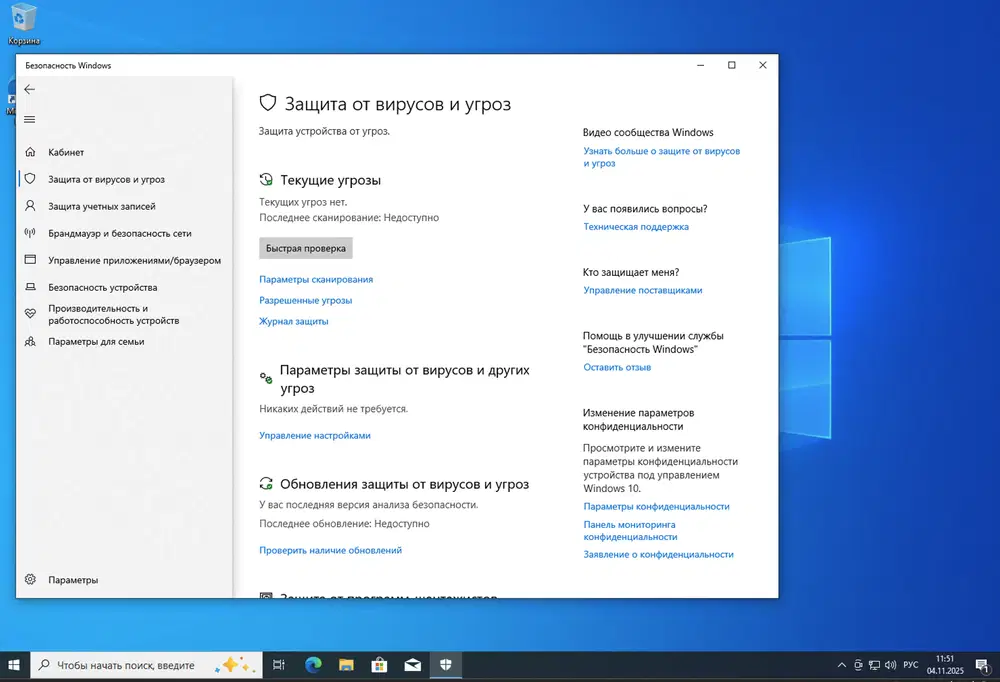 После окончания официальной поддержки Windows 10 Microsoft всё же не бросает систему совсем без защиты. Встроенный Microsoft Defender Antivirus продолжит получать обновления базы вирусов и другие сигнатуры угроз на Windows 10 даже после 2025 года – по заверению компании, такие обновления будут выходить «в пределах возможного» вплоть до октября 2028 года. Проще говоря, базовая антивирусная защита на Windows 10 какое-то время останется актуальной. Это, конечно, лучше, чем ничего – новые вирусы и вредоносные программы по-прежнему смогут распознаваться и блокироваться встроенным антивирусом.