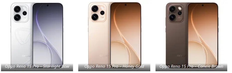 Модель Oppo Reno 15 Pro получит отделку в цветах Starlight Bow, Honey Gold и Canele Brown. Конфигурации устройства включают: